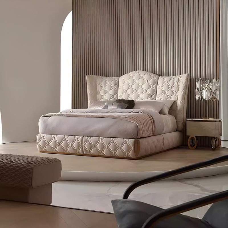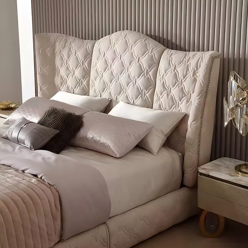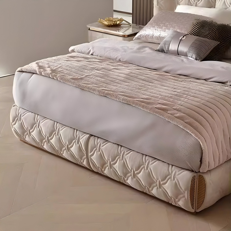 Mit hochgradigem Samt bedeckt, hat es eine zarte und hautfreundliche Note. Der aus Italien importierte Samtgewebe ist staubdicht und Anti-Mite. In Kombination mit ergonomischem Design interpretiert es die zurückhaltende und luxuriöse Schlafzimmerästhetik.