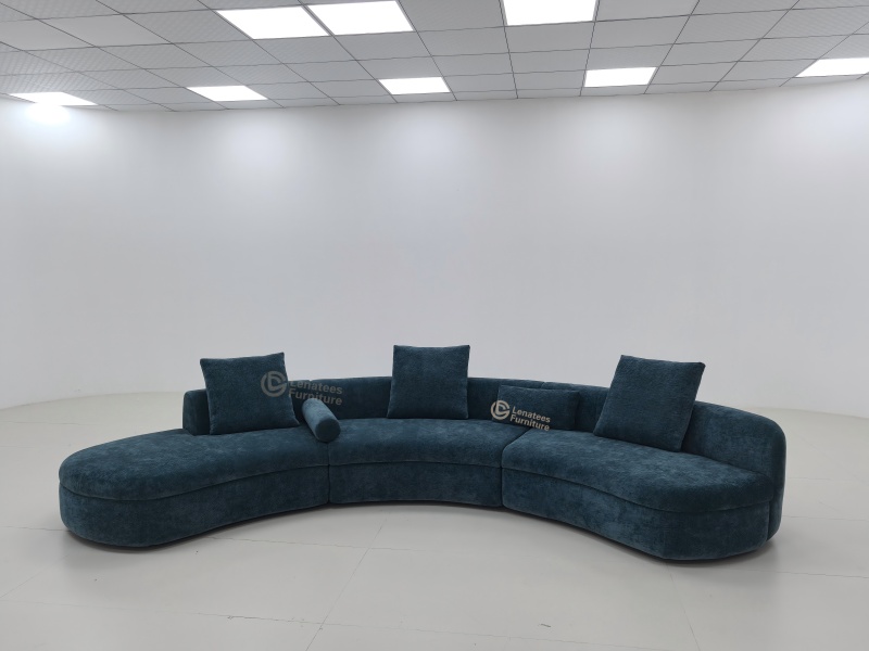 Dieses gekrümmte Sofa besteht aus hochwertigen Baumwoll-, Leinen- und Flanellstoffen und bricht das traditionelle gerade Liniendesign mit einer natürlichen und glatten Umarmungsform. Die ergonomische, gekrümmte Rückenlehne ist mit einer Schwamm mit hoher Dichte übereinstimmt, um Allround-Unterstützung zu bieten und das Sitzen und Liegen zu machen, als würde man sanft umarmt werden.