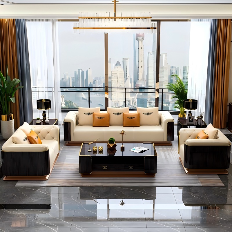 Mit dem modularen kostenlosen Kombinationsdesign können Sie das Hauptsofa + -Caise-Longue + Einzelsitz frei kombinieren, um den sozialen Bedürfnissen von 3-8 Personen zu erfüllen. Das importierte italienische Nappa -Leder enthält dünne Metallbeine und zeigt eine zeitgenössische leichte Luxusästhetik.