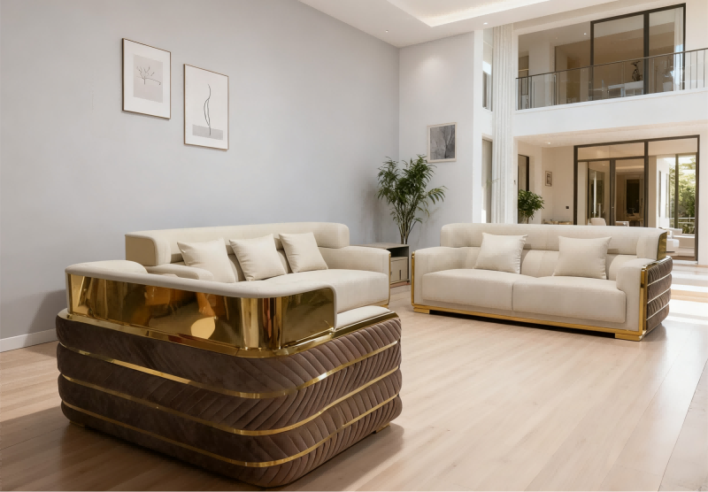 Attraktives Design: Schlichte Linien und luxuriöse Details wie Metallbeine und Samtpolsterung werten den Stil Ihres Wohnzimmers sofort auf.